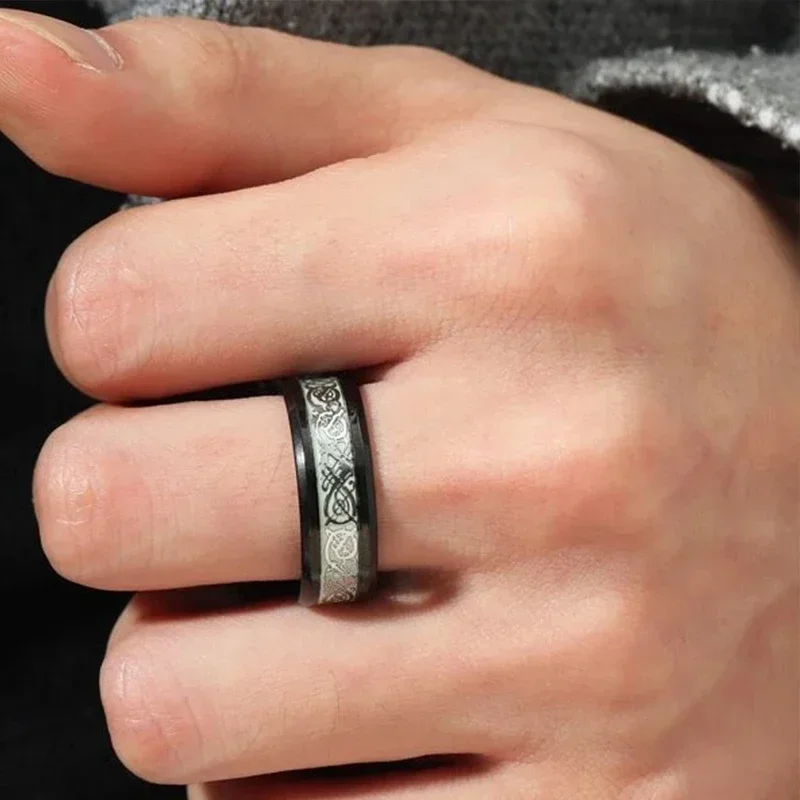 This fashion-forward ring is precision-crafted from durable stainless steel, featuring an intricate dragon motif rendered in a classic Celtic pattern. Designed as a statement piece for unisex wear, it falls under the model number NB484 and is offered with customization options to meet individual preferences. Its composition is rigorously managed, ensuring it contains no high-concern chemicals for safe and confident wear.